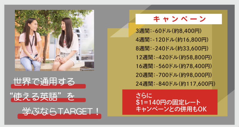 2025年・2026年留学は、TARGET GLOBAL ENGLISH ACADEMYのダブルキャンペーンが大変お得です。