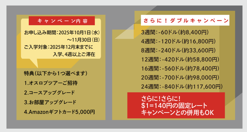 日) - ご入学対象:2025年12月末までに入学、4週以上ご滞在