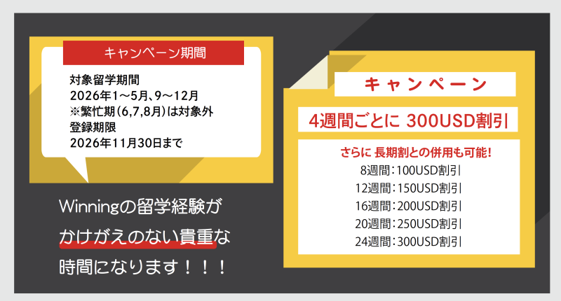 【WINNING ENGLISH ACADEMY シティキャンパス】2026年オフシーズンダブルキャンペーン開催!