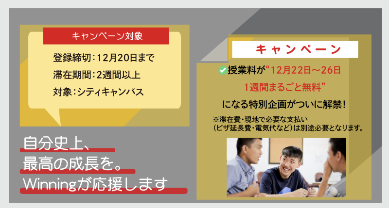 【Winning】授業料1週間無料で安心のコスパ。クリスマス・年末年始はセブでレベルアップ。