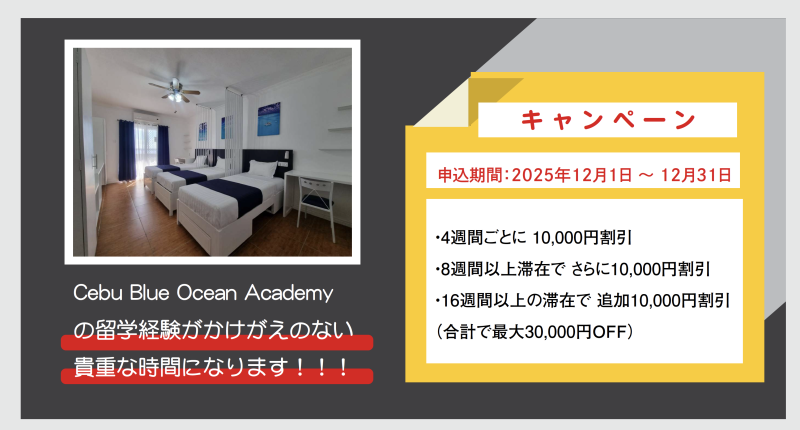 【10周年記念キャンペーン 第4弾】Cebu Blue Ocean Academy