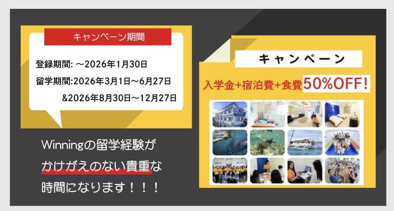 【WINNING】2026年 初売り お年玉 キャンペーン|セブ島留学が今だけ半額!