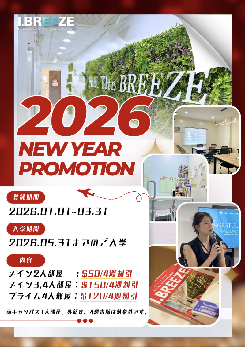 I.BREEZEのNEW YEARキャンペーン.安心・安全×好立地!I.コスパ最強セブ島留学
