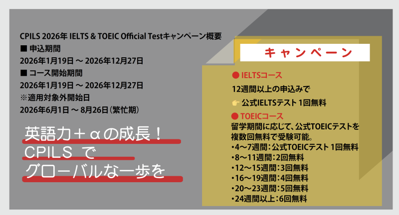 CPILS 2026年 IELTS & TOEIC Official Testキャンペーン