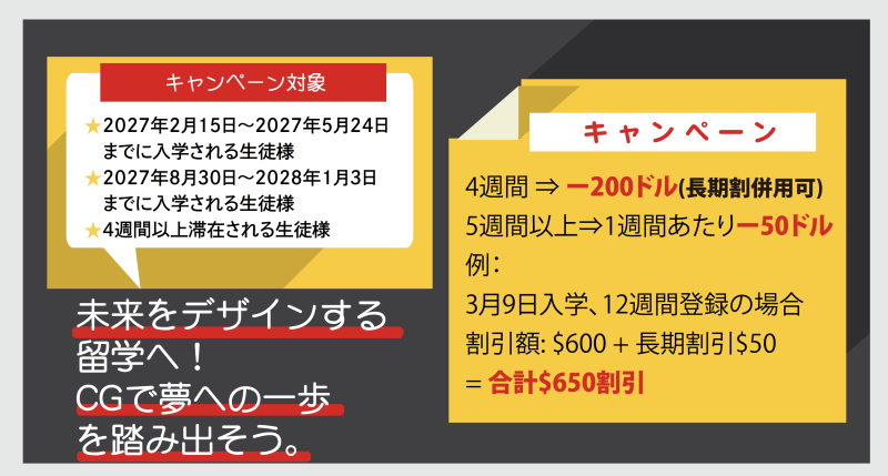 【CGアカデミー】早割キャンペーン情報!2027/2/15~2027/5/24・2027/8/30~2028/1/3入学対象