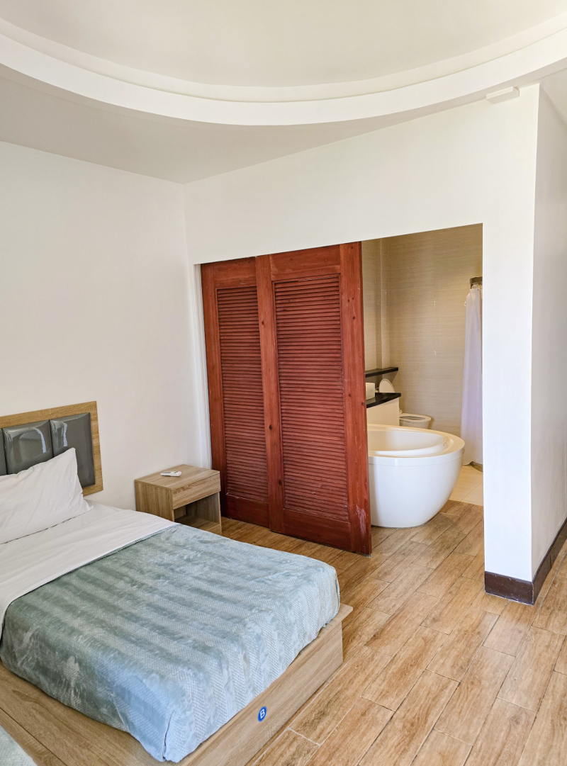 バスタブ付き1人部屋やプール直結の3人部屋など、