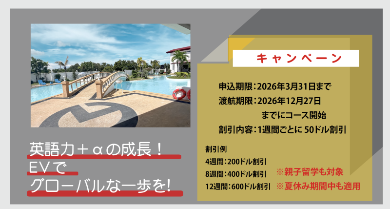 【EV La Mer】1週ごとに50ドル割引。夏休みも親子留学もOK!学びも癒しも妥協しない。ワンランク上の留学
