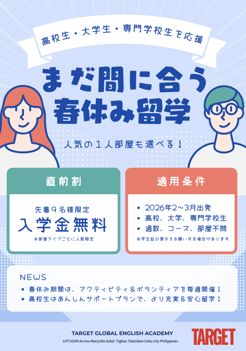 TARGET Global English Academy 学生限定キャンペーン【先着9名】