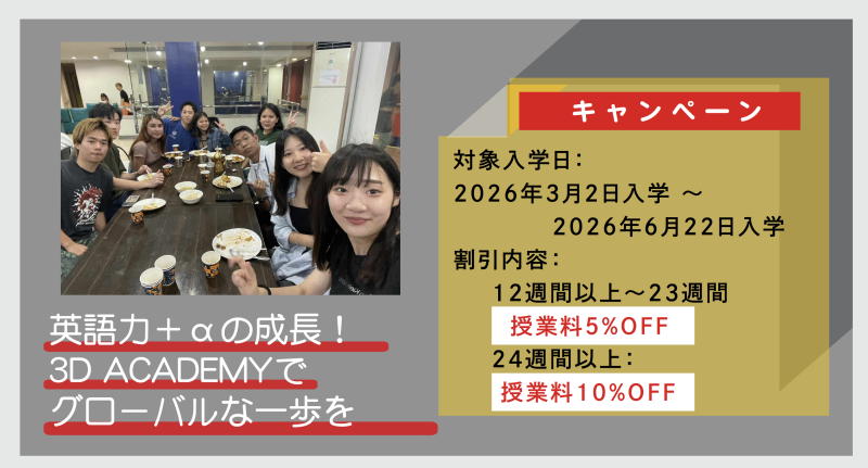 【2026年春】3D ACADEMY 春の留学応援キャンペーン