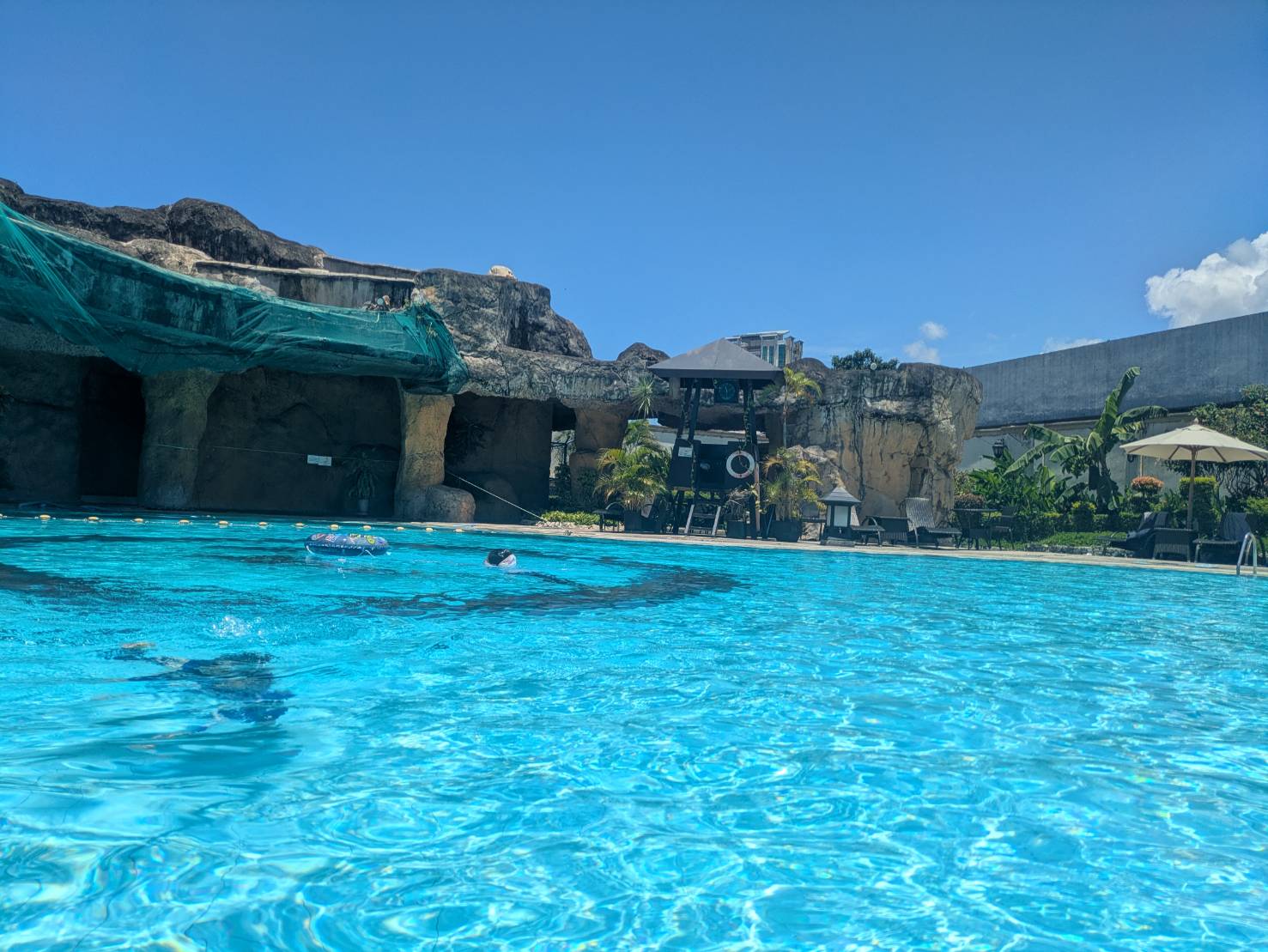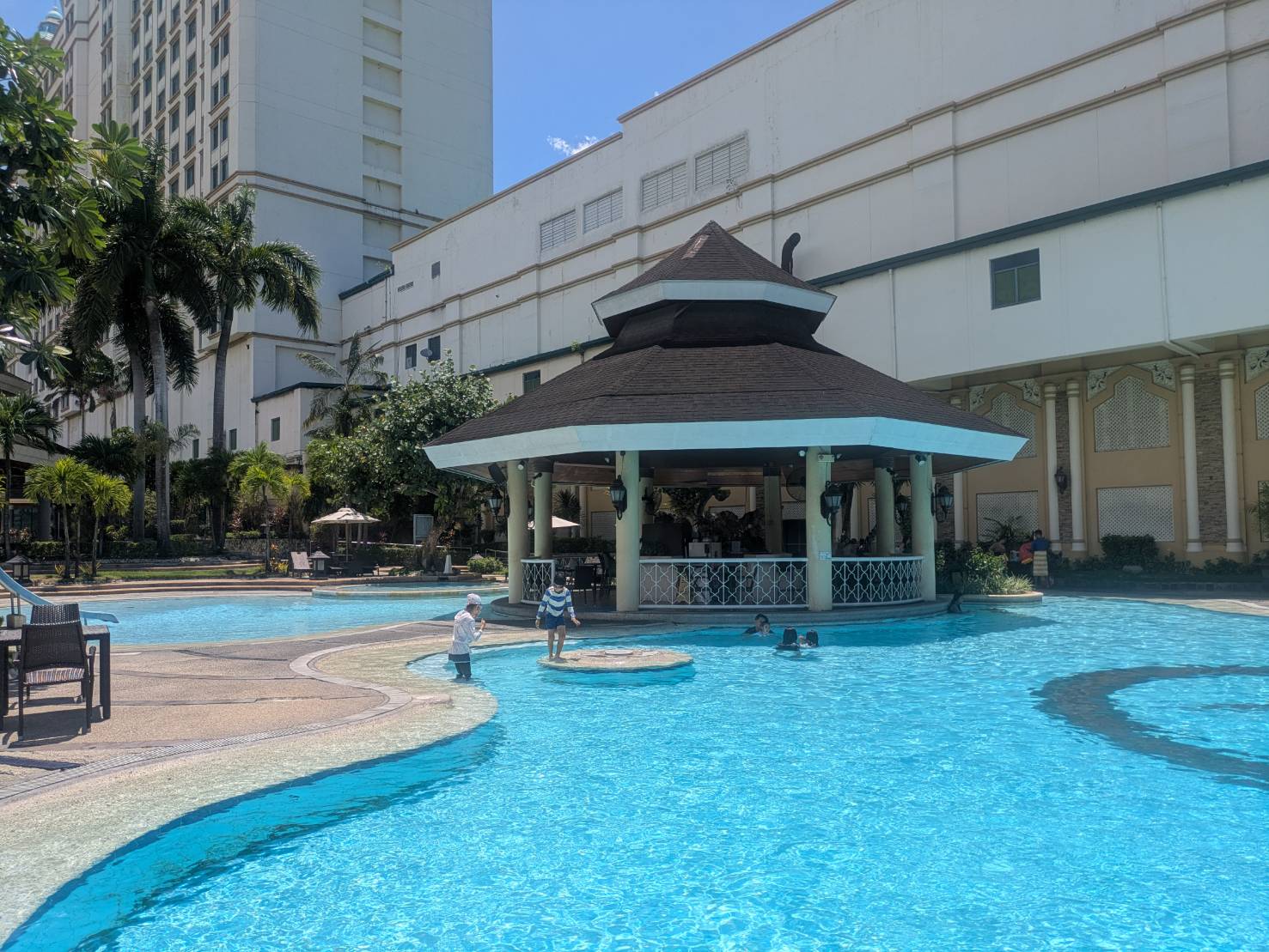 ウォータフロントホテルのジムとプールが無料で利用可能。