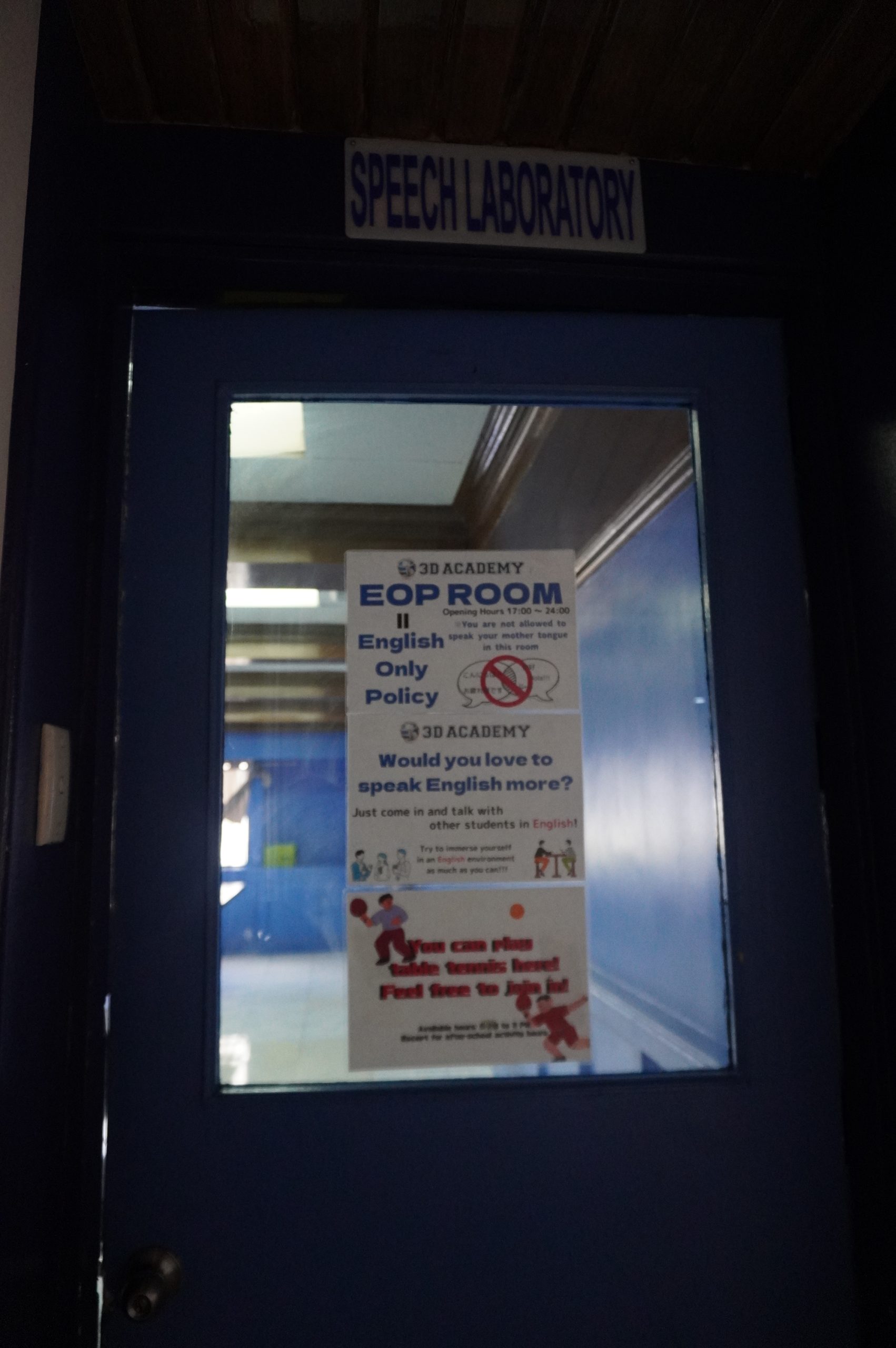 3Dでは、**英語以外使用禁止の「Speech Lab」**を設置。平日11:00〜24:00、自由に使える英語特訓ルームで、同じ志を持った仲間と英語だけでコミュニケーションできます。
