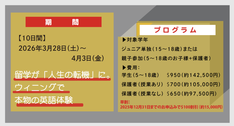 【Winning English Academy 春休みファミリーキャンプ2026】