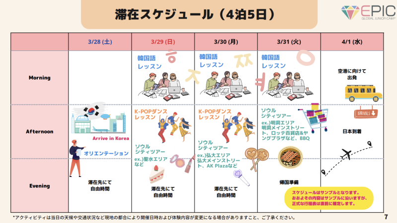 - レベル:初級〜上級対応2026春 EPIC CAMP KOREA