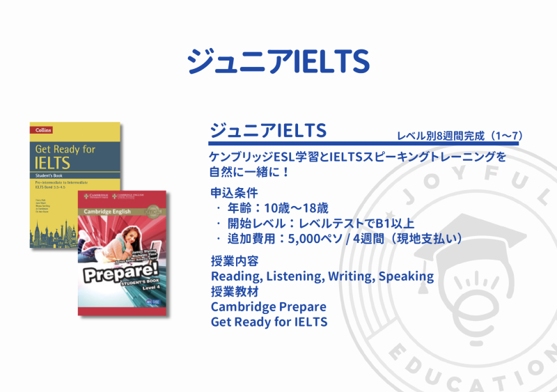 【ジュニアIELTS(10〜18歳向け)】海外進学にもつながる本格指導