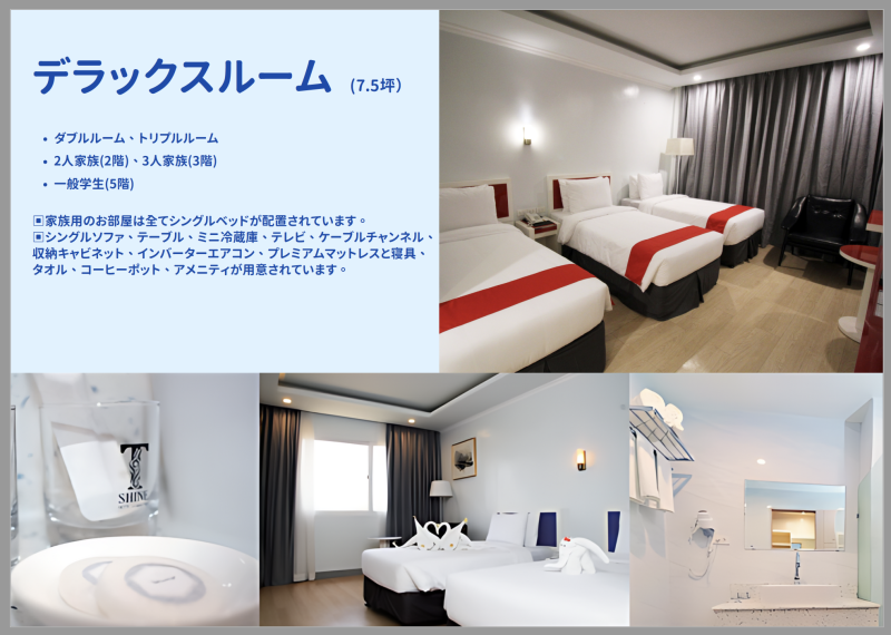 滞在:Joyful Edu – T-Shine Hotel Campus(同敷地内)