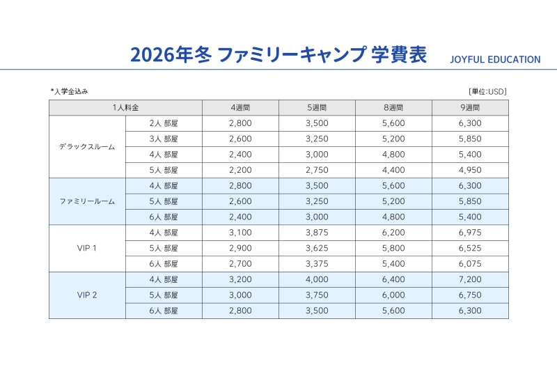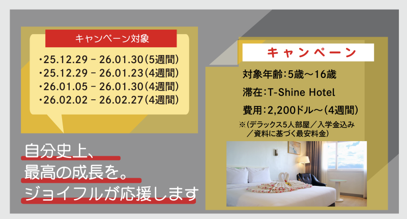 【JOYFUL】年末年始もほぼ通常授業。冬休み限定の親子留学。