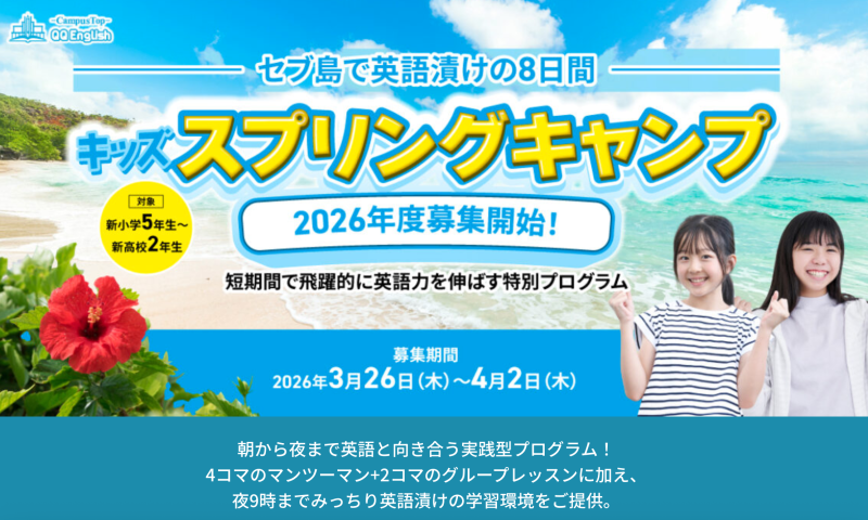 【成田・関空から引率】セブ島・海外 2026年〈Spring〉春のジュニアキャンプ特集!!