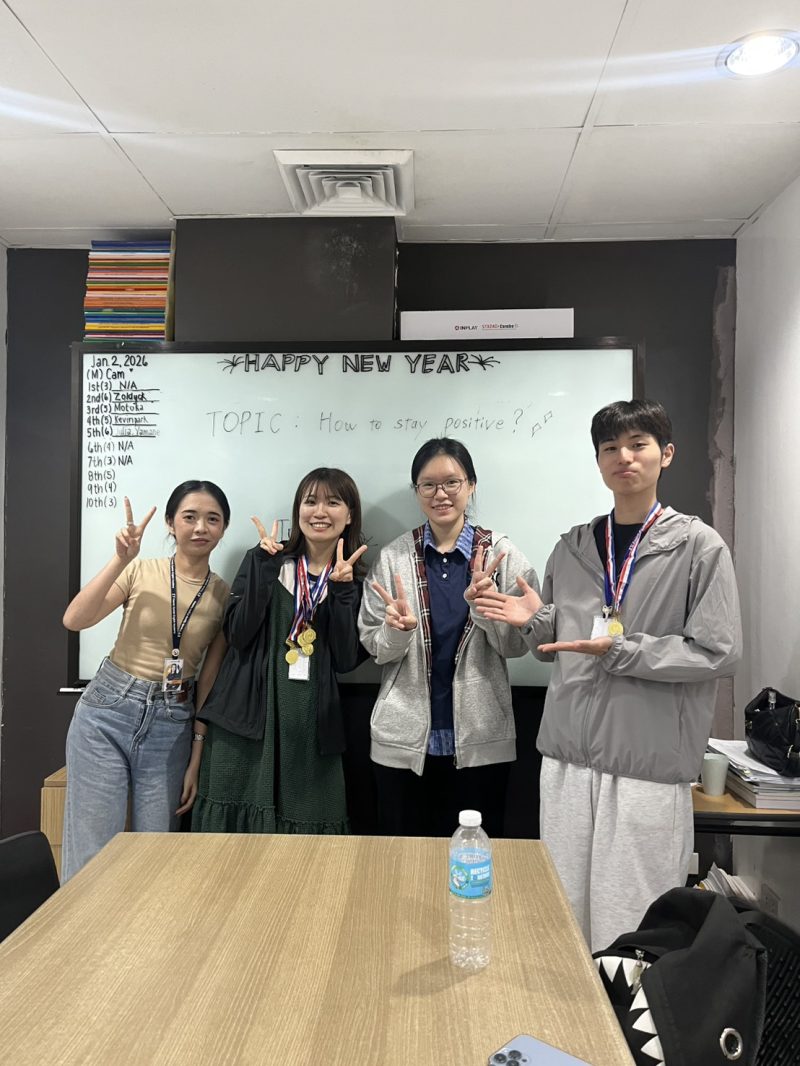 私自身、留学前は英語を常に使う環境がなく、自分が英語を話せていることのイメージを持てない部分もありました。ただ、年末年始のフィリピンのホリデー期間にあたる中で、マンツーマンのクラスも多く組んでいただき、英語を話すことへの抵抗が全くなくなりました。(自分でも驚いております…)また、最初に受講するテストごとのレベル別に授業やメンバーも割り振られるため、グループクラスも大変学びが多かったです。
