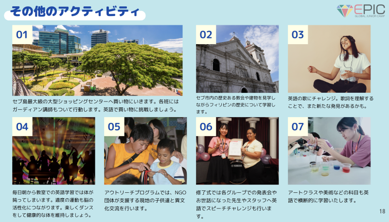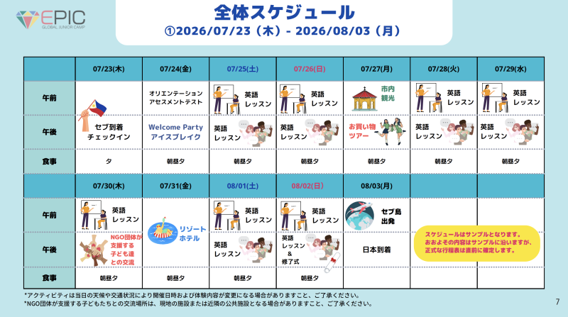 **2026年 ジュニアSUMMERキャンプ(EPIC CAMP CEBU)**です。