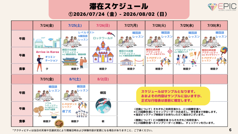 **GLC 韓国スプリング・ジュニアキャンプ(EPIC CAMP KOREA)**です。