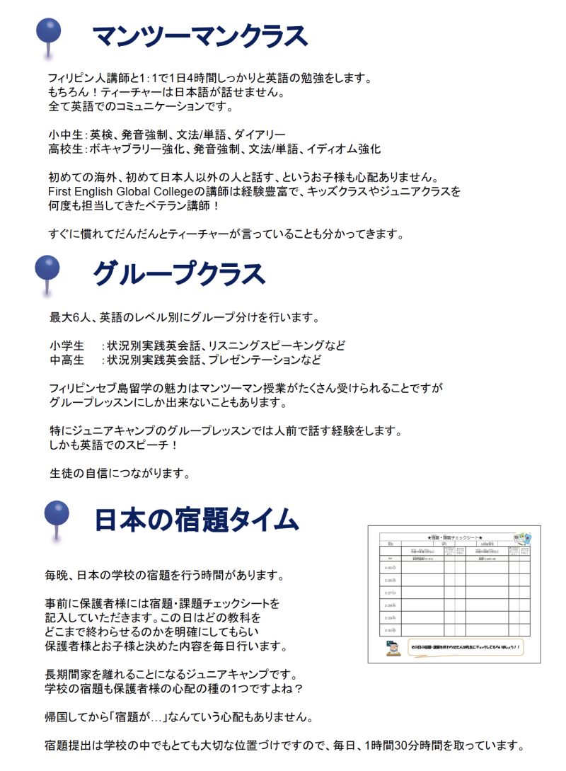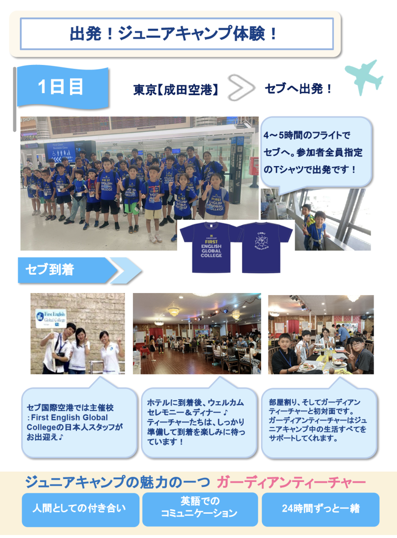 **First English Global College 2026 夏休み セブ島ジュニアキャンプ(成田・添乗員同行)**です。