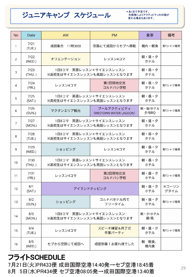 2026 夏休みセブ島ジュニアキャンプ(成田・添乗員同行)