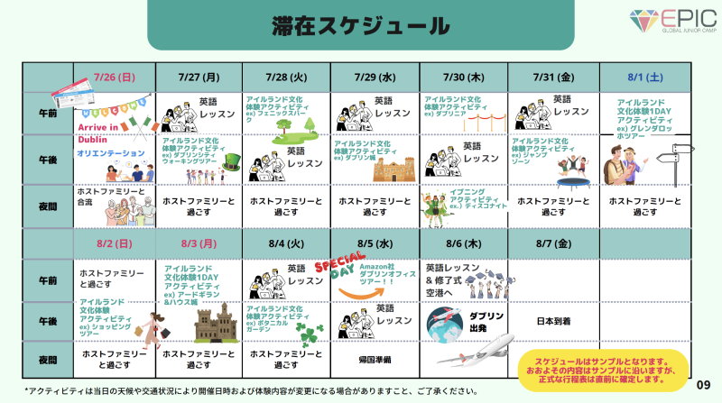 GLC 2026年 ジュニアSUMMERアイルランドキャンプ(成田添乗員同行)。