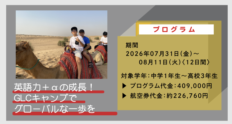 【GLC ドバイサマーキャンプ】世界が注目する国際都市、ドバイで英語を使う12日間!