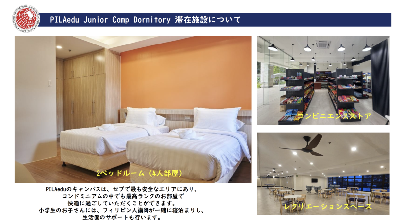 小学生は 3~4人部屋・ フィリピン人ガーディアン講師が同室滞在