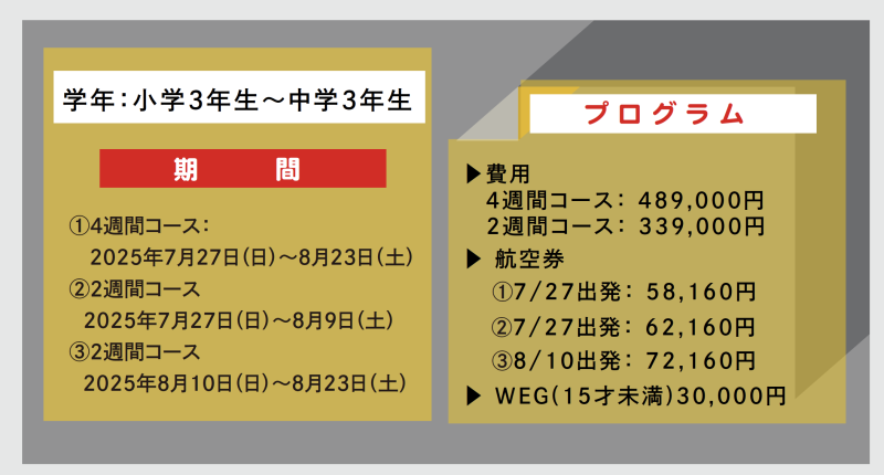 【SMEAG サマーキャンプ】成田 日本人添乗員同行!(7/26〜8/22・7/26〜8/8・8/9〜8/22)小3〜中3 2週間/4週間