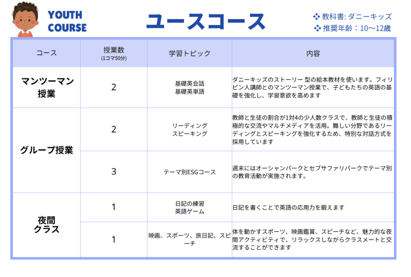 英語力と年齢に合わせた2つのコースが用意されています。