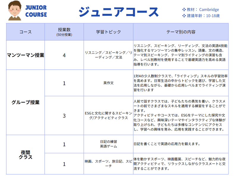 ・ジュニア教育に特化したプログラム